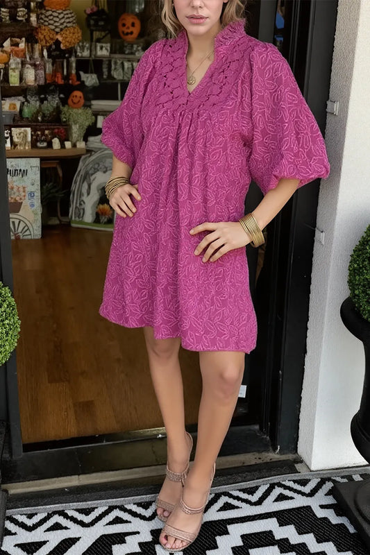 Lace Detail Printed Three-Quarter Sleeve Dress