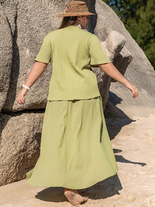 Plus Size V-Neck Half Sleeve Top and High-Low Skirt Set