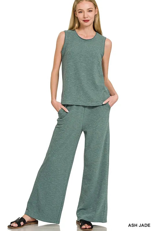 Sold outZenana Cotton Slub Tank & Pants Set