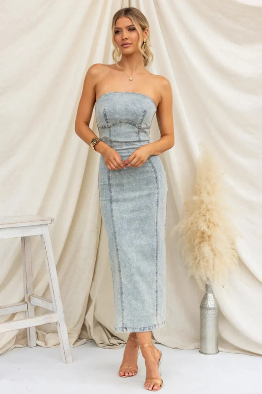 Mittoshop Washed Denim Ruffle Short Sleeve Collared Shirt