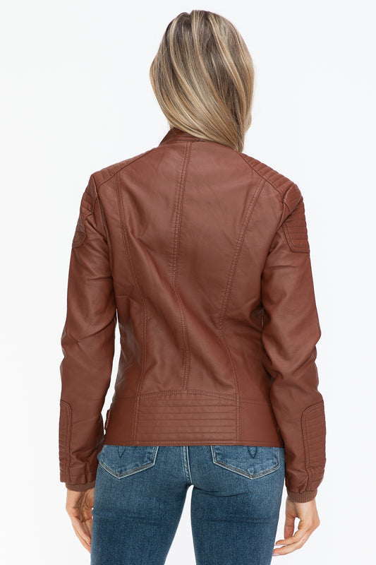 Snobbish Faux Leather Biker Jacket with Side Zip Pockets